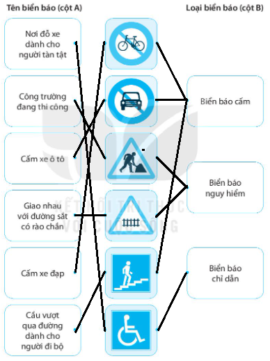 Bài 5. Nối hình với tên biển báo (ở cột A) và loại biển báo giao thông (ở cột B) cho phù hợp