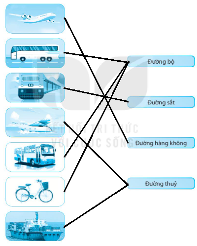 Bài 1. Nối các phương tiện giao thông với loại đường giao thông tương ứng.