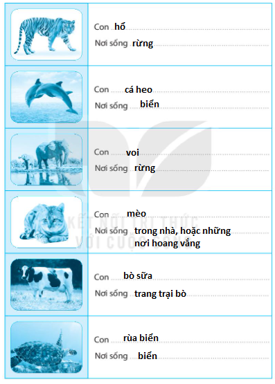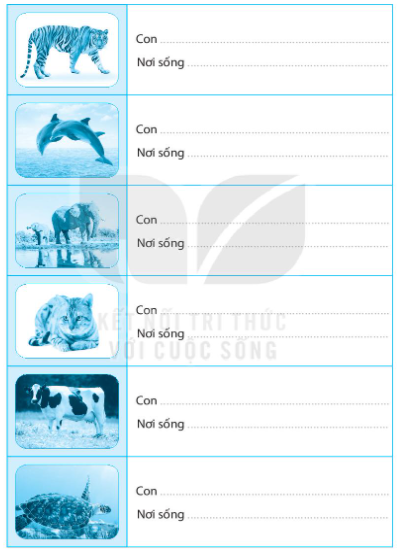Bài 2. Viết tên con vật và nơi sống của chúng vào chỗ (...)