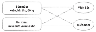 Bài 4. Hãy tô đậm các đường thẳng để thể hiện các mùa đặc trưng ở miền Bắc và miền Nam nước ta. Khoanh đậm vào tên miền nơi em sống và các mùa ở đó.