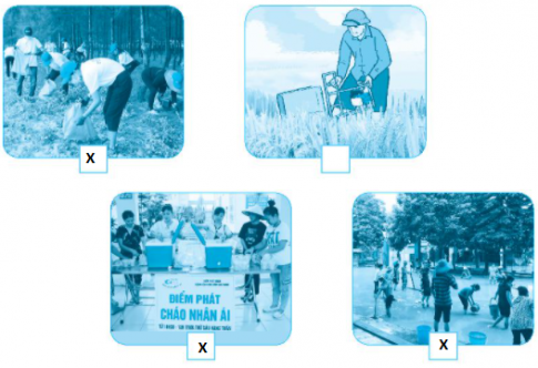 Bài 2. Đánh dấu X vào ô trống dưới những hình ảnh mô tả công việc tình nguyện không nhận lương.