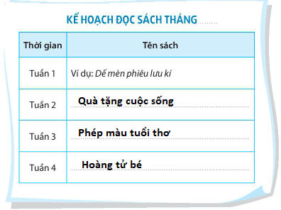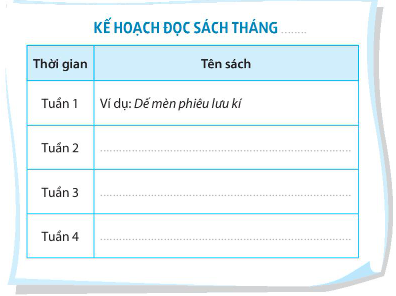 Bài 6. Lập kế hoạch đọc sách trong một tháng của em.