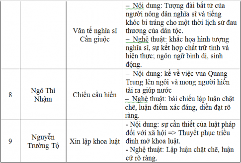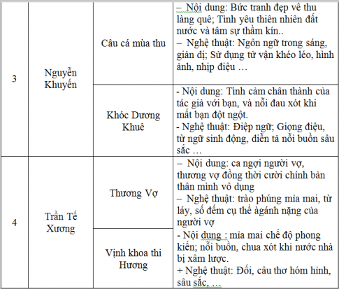 Câu 1: (Trang 77 - SGK Ngữ văn 11 tập 1) Lập bảng thống kê về tác giả, tác phẩm văn học trung đại trong chương trình lớp 11