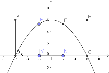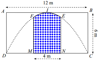 Câu 40: Một công ty quảng cáo X muôn làm một bức tranh trang trí hình MNEIF ở chính giữa của một bức tường hình chữ nhật ABCD có chiều cao BC=6m, chiều dài CD=12m (hình vẽ). Cho biết hình chữ nhật MNEF là hình chữ nhật có MN=4m, cung EIF có hình dạng là một phần của cung Parabol có đỉnh I là trung điểm của cạnh AB và đi qua hai điểm C và D. Kinh phí làm bức tranh là 900 000 đồng/