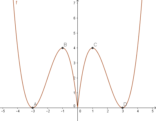Vì vậy để hàm số có 5 cực trị thì đồ thị phải tịnh tiến về bên phải sao cho điểm hai điểm cực trị phải nằm hoàn toàn bên phải của trục tung