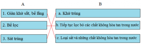 Mỗi bước làm sạch nước ở cột A ứng với cụm từ nào ở cột B?