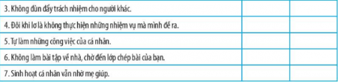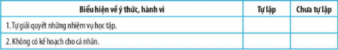 Những biểu hiện về ý thức, hành vi nào dưới đây thể hiện và chưa thể hiện tính tự lập? Em hãy đánh dấu x vào ô mà em lựa chọn.