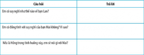 Nếu là Hồng trong tình huống này em sẽ khuyên Mai không nên suy nghĩ như thế mà hãy noi gương Lan mà học tập.