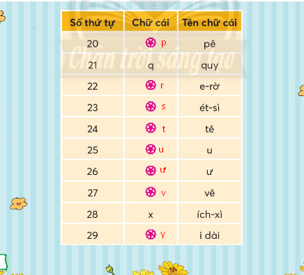 b) Tìm chữ cái thích hợp với mỗi chỗ trống. Học thuộc tên các chữ cái trong bảng.