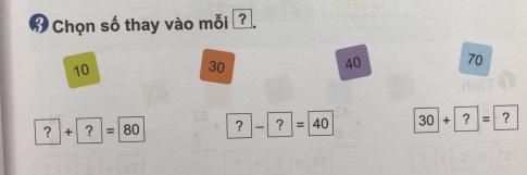 - 30 + 10 = 40 hoặc 30 + 40 = 70
