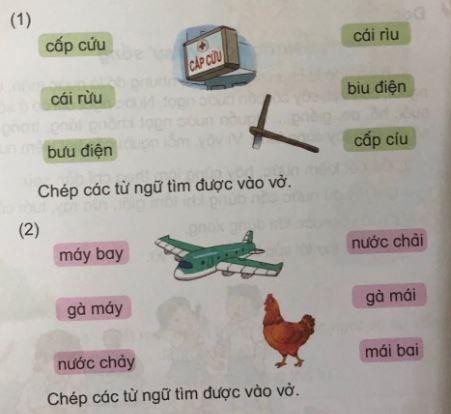 - Các từ viết đúng: cấp cứu, bưu điện, cái rìu, máy bay, nước chảy, gà mái.