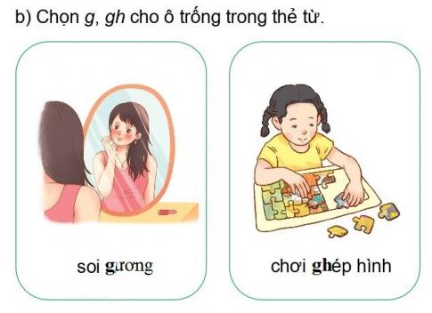 b. Chọn g, gh vào chỗ trống trong thẻ từ.