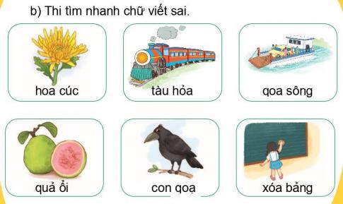 - Từ viết đúng: hoa cúc, tàu hỏa, quả ổi, xóa bảng.