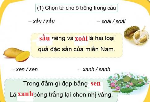 c. Chọn (1) hoặc (2) để chơi trò Nhìn hình đoán chữ.