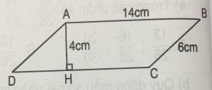 2. Cho hình bình hành ABCD có AB = 14cm; BC = 6cm và chiều cao AH = 4cm (như hình vẽ). Hãy tính chu vi và diện tích của hình bình hành ABCD.
