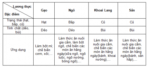- Một số loại lương thực phổ biến ở Việt nam: lúa, ngô, khoai, sắn