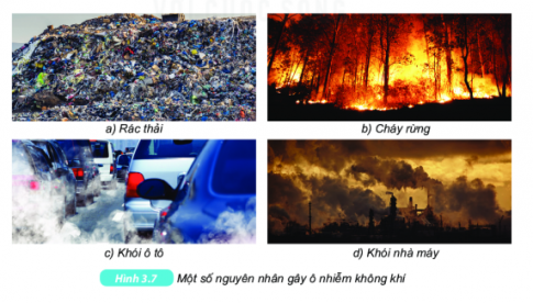 Quan sát hình 3.7 và nêu ra các nguyên nhân gây ô nhiễm không khí.