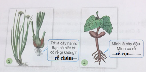 Quan sát và đọc thông tin hình 1, 2: Chỉ vào những hình và nói đâu là rễ cọc, đâu là rễ chùm...