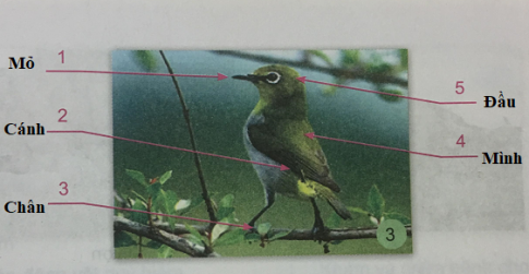 b. Chỉ và nói tên các bộ phận bên ngoài cơ thể của con chim trong hình 3
