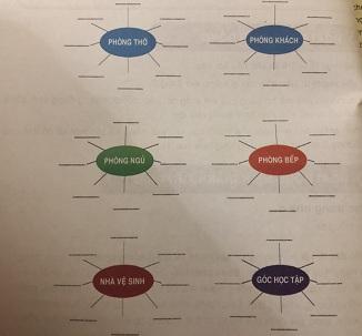 Điền tên các loại đồ đạc chủ yếu thường được sử dụng của gia đình vào chỗ chấm theo từng khu vực của nhà ở cho trong các sơ đồ sau.