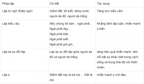 Điệp ngữ: Tôi biết... Tôi biết... Tôi thật không hiểu... Tôi đã chứng kiến... ngài phải phải nhớ... Ngài phải gìn giữ... ngài phải dạy... ngài phải bảo...