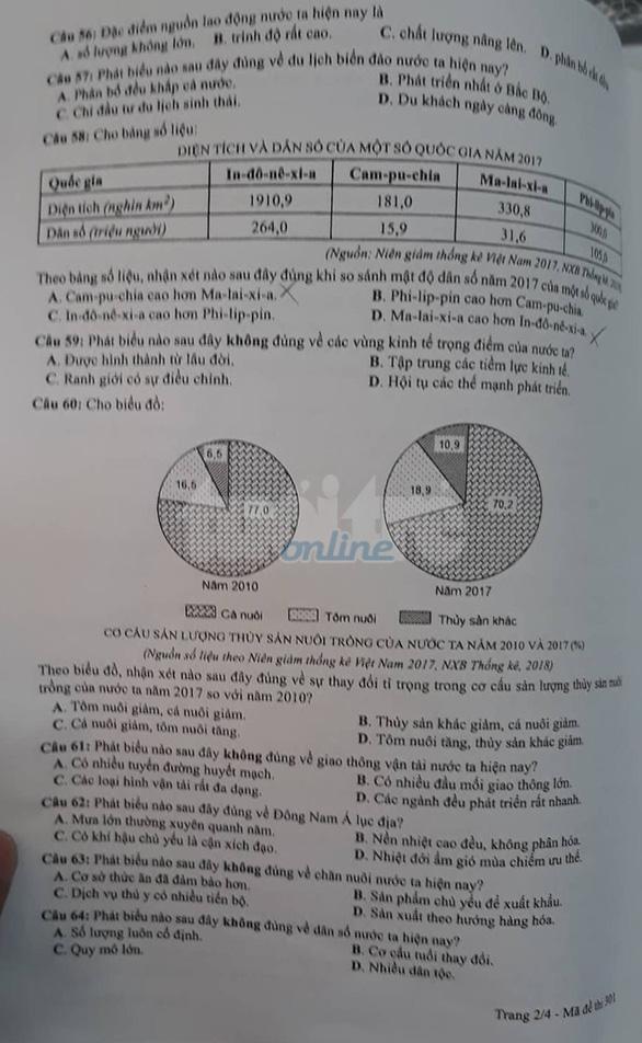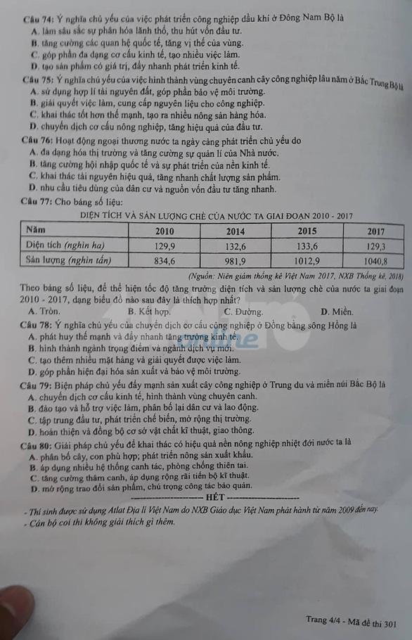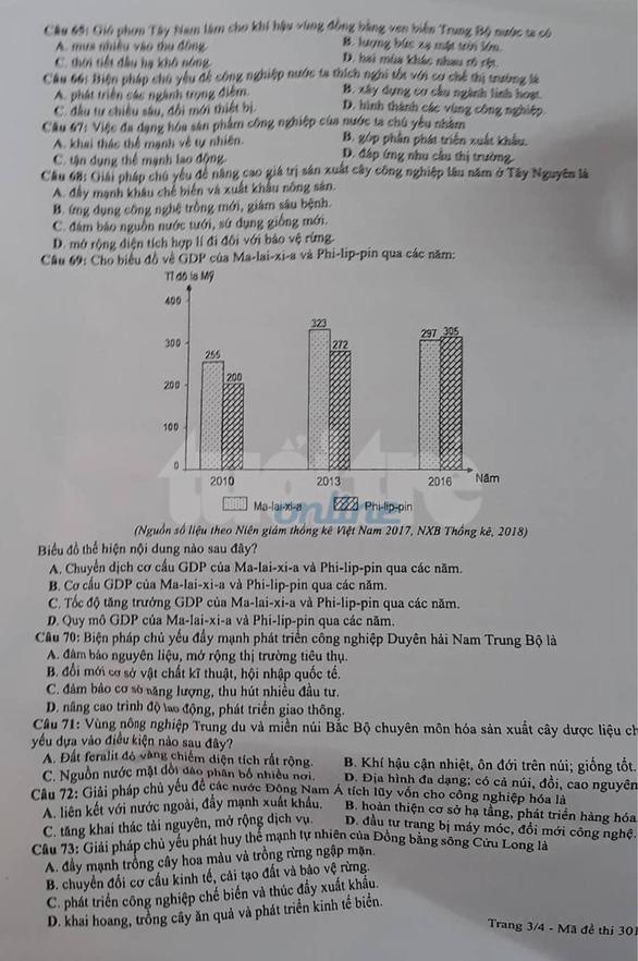 ĐỀ THI MÔN ĐỊA LÍ MÃ ĐỀ 301