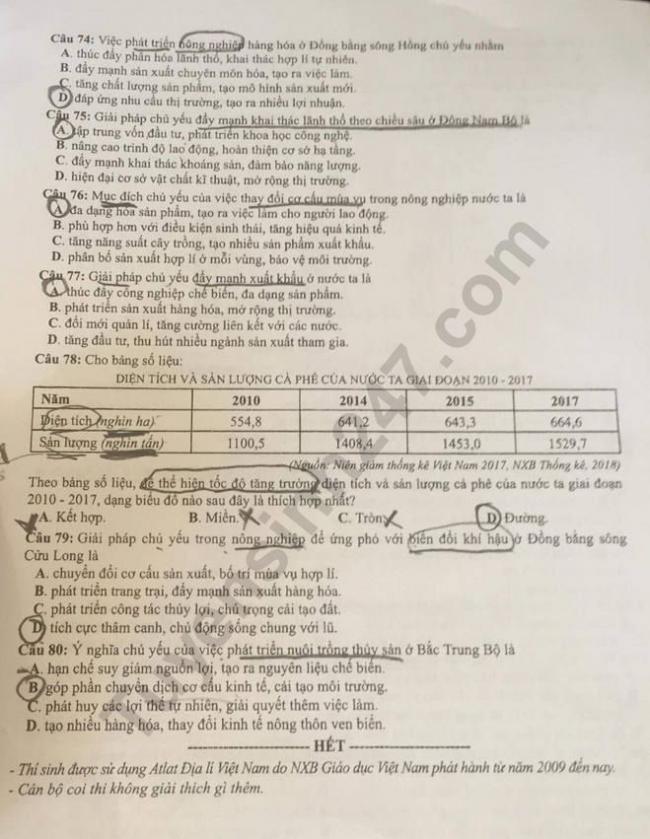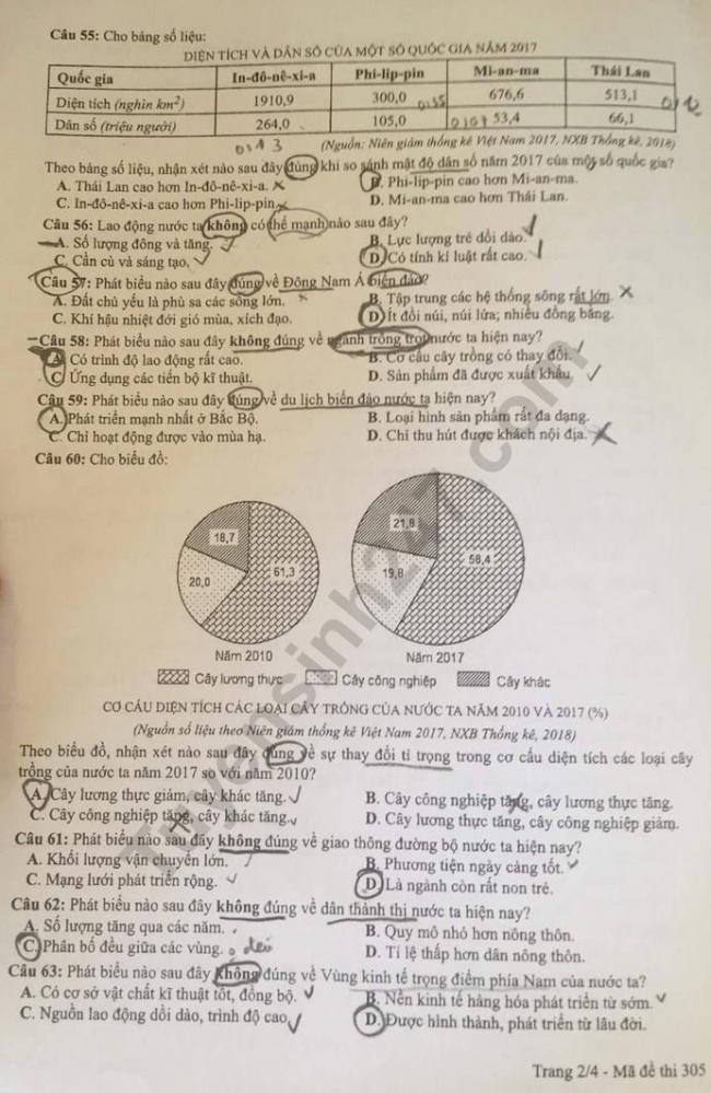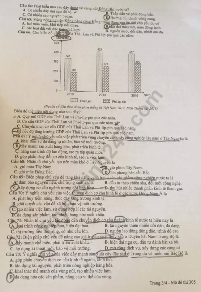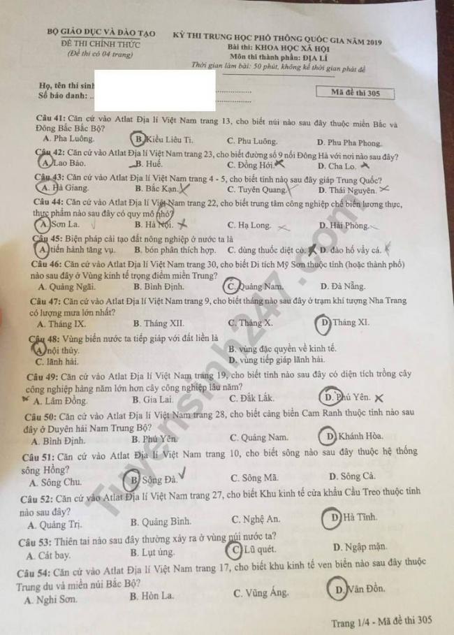 Thi THPQG 2019: Đề thi và đáp án môn Địa lí mã đề 305