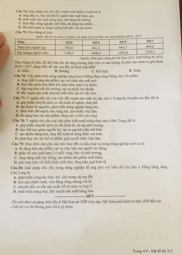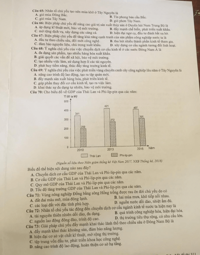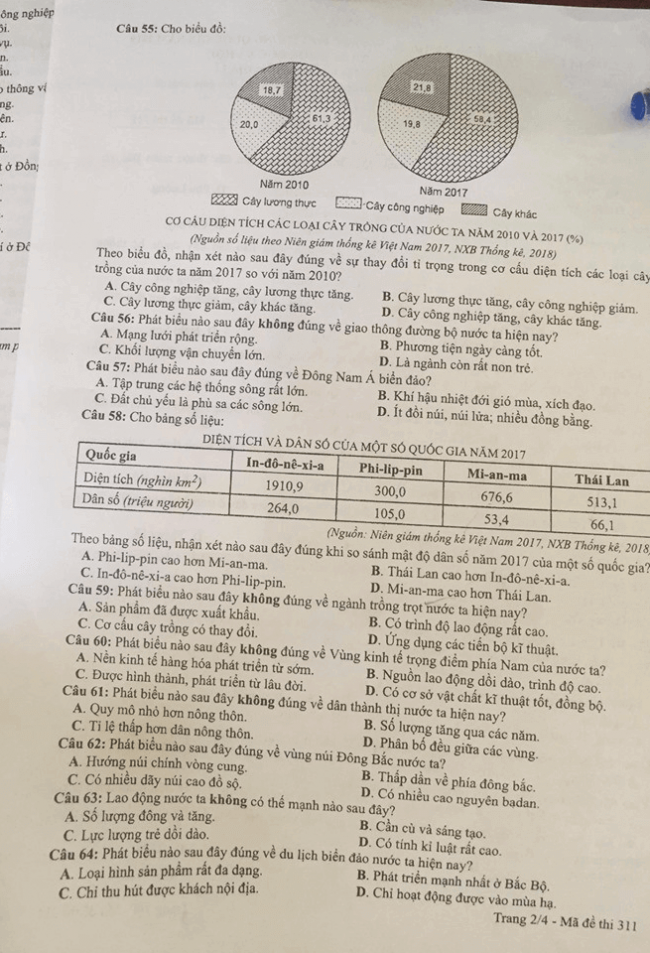 Thi THPQG 2019: Đề thi và đáp án môn Địa lí mã đề 311