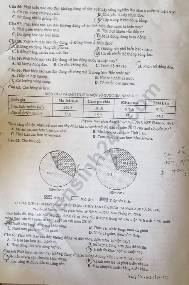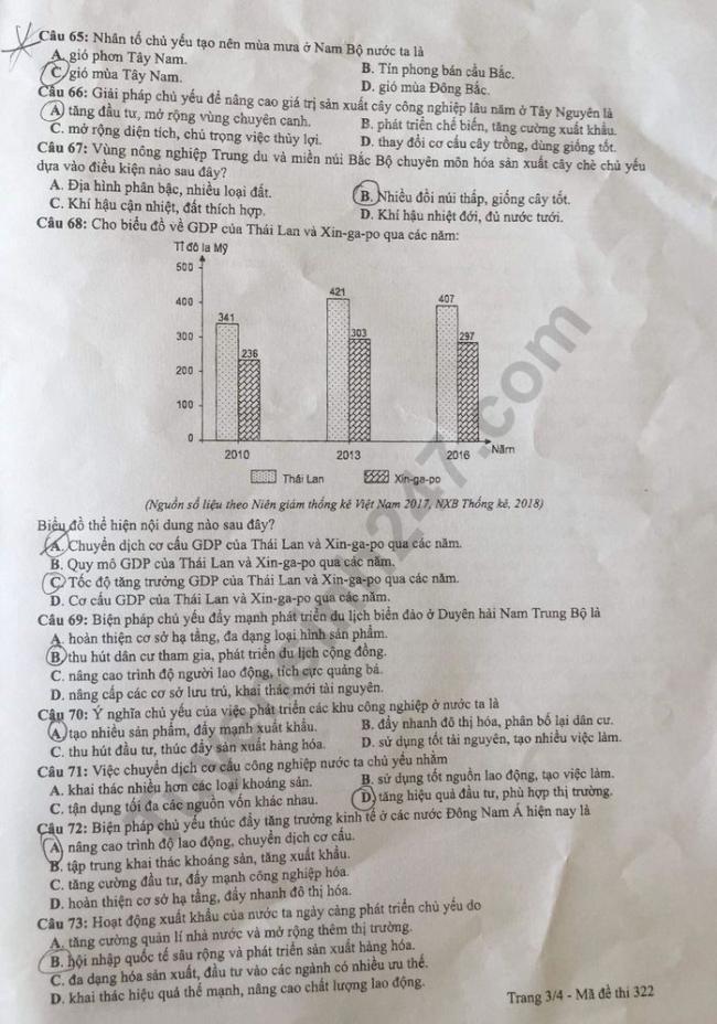 Thi THPQG 2019: Đề thi và đáp án môn Địa lí mã đề 322