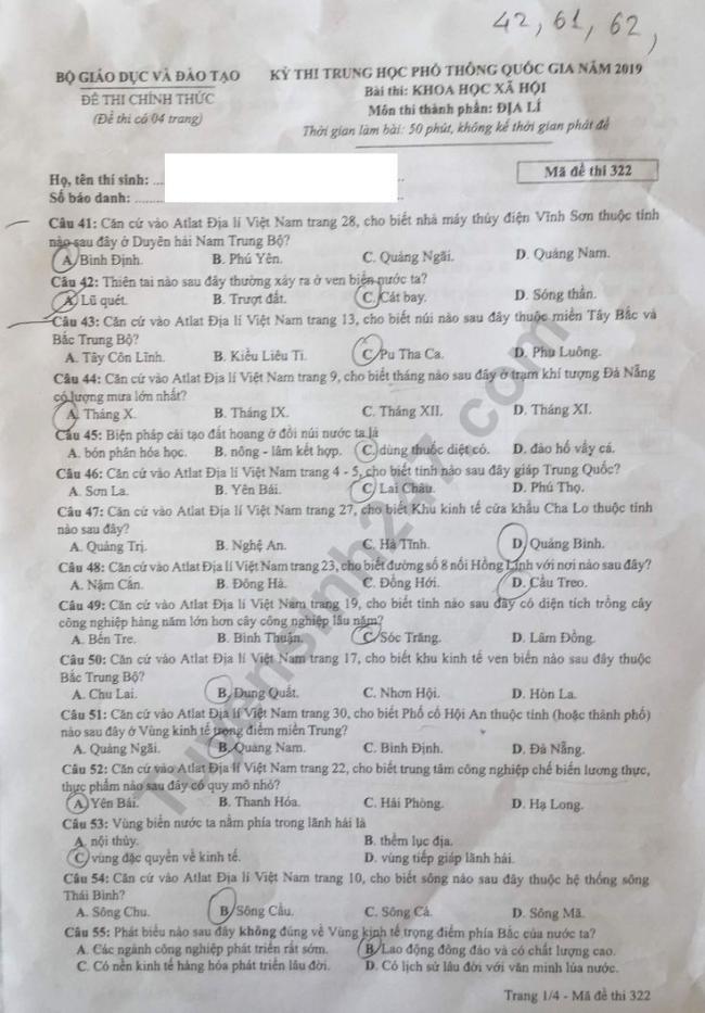 Cập nhật liên tục đề thi và đáp án môn Địa lí kì thi THPT quốc gia năm 2019. Dưới đây, KhoaHoc sẽ gửi đến quý phụ huynh và học sinh đề thi và đáp án môn Địa lí mã đề 322. Mời quý bạn đọc cùng tham khảo.