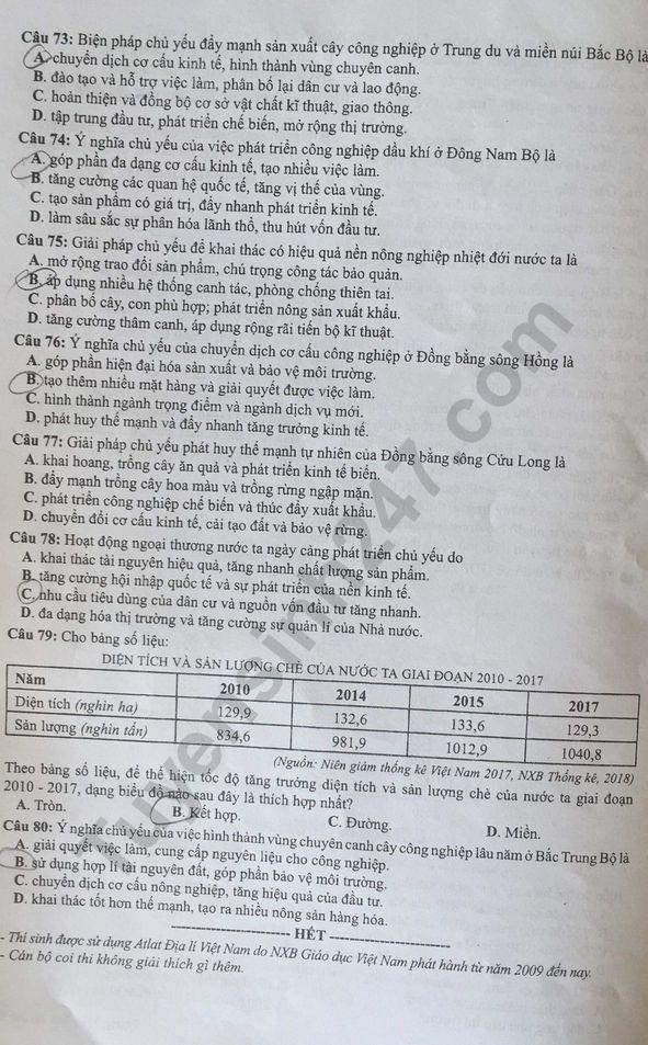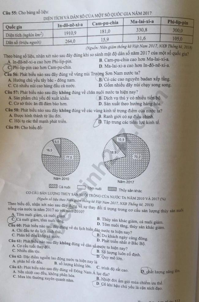 Thi THPQG 2019: Đề thi và đáp án môn Địa lí mã đề 323