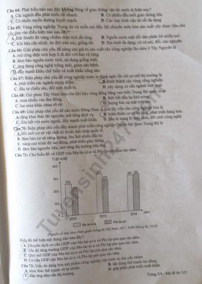 ĐỀ THI MÔN ĐỊA LÍ MÃ ĐỀ 323