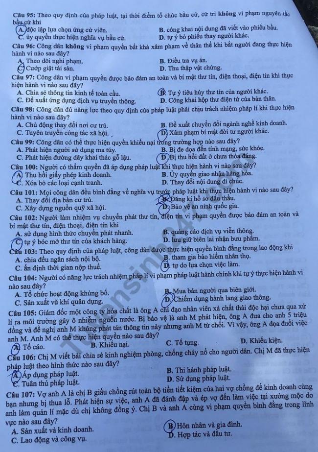 - Thi THPQG 2020: Đề thi và đáp án môn GDCD mã đề 305