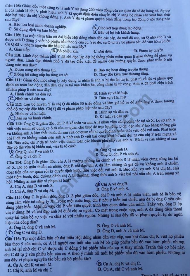 - Thi THPQG 2020: Đề thi và đáp án môn GDCD mã đề 310