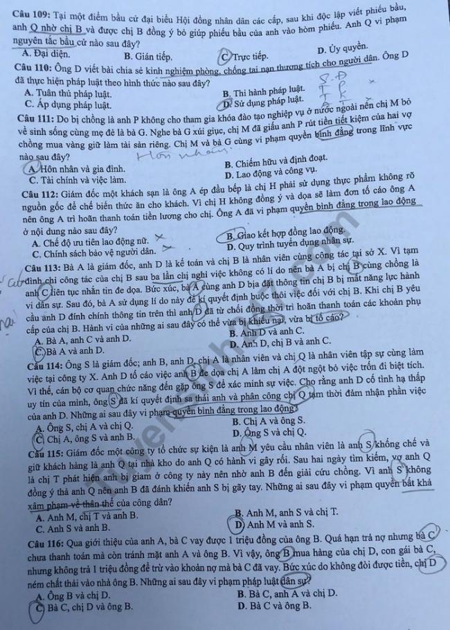 - Đề thi và đáp án môn GDCD mã đề 301