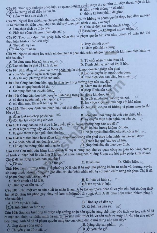 - Đề thi và đáp án môn GDCD mã đề 311