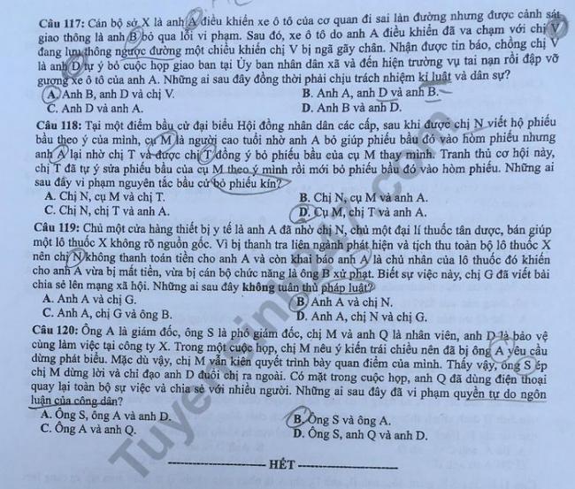 - Đề thi và đáp án môn GDCD: Mã đề 317