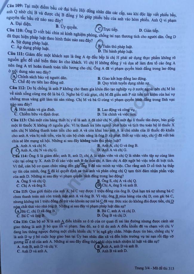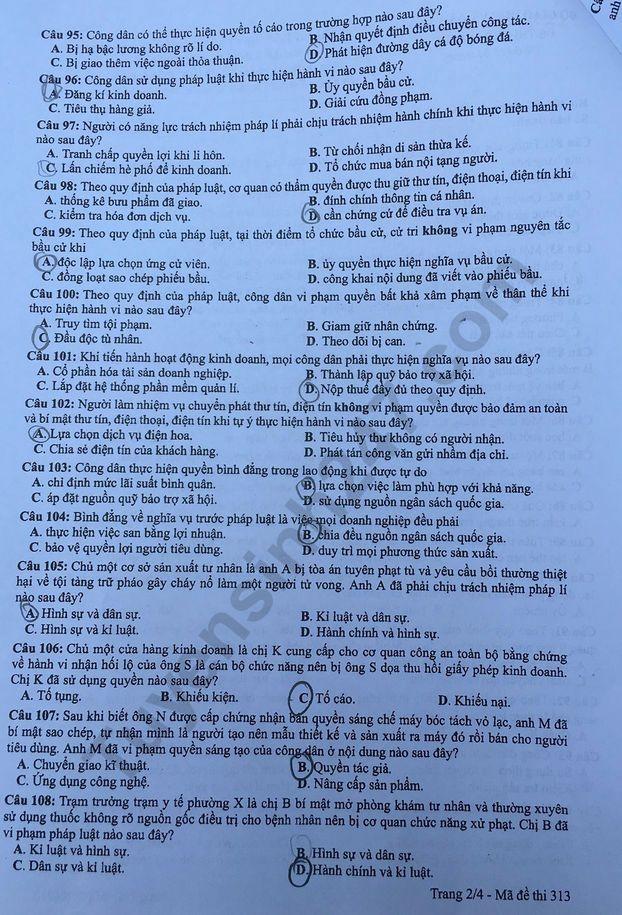 - Đề thi và đáp án môn GDCD: Mã đề 313