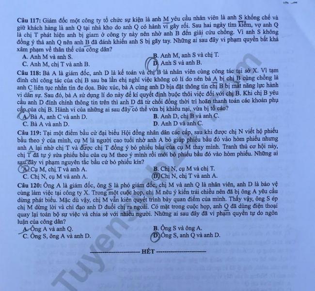 - Đề thi và đáp án môn GDCD: Mã đề 305