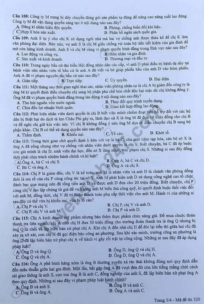 ĐỀ THI MÔN GDCD MÃ ĐỀ 320