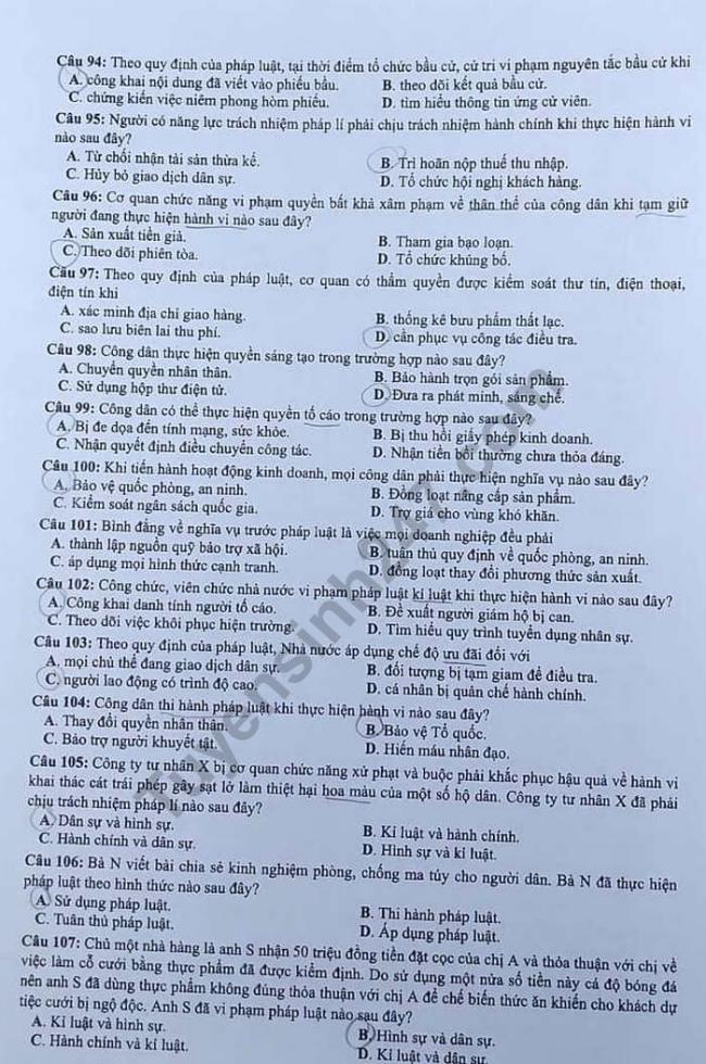 - Thi THPQG 2020: Đề thi và đáp án môn GDCD mã đề 305