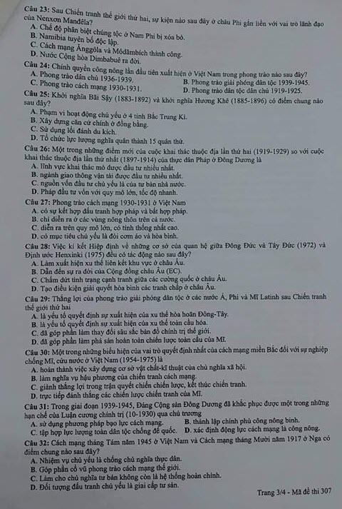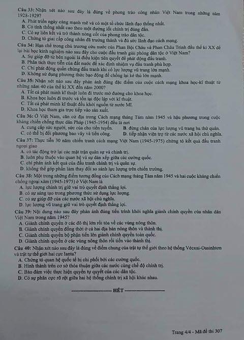 ĐỀ THI MÔN LỊCH SỬ MÃ ĐỀ 307