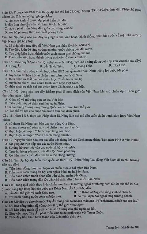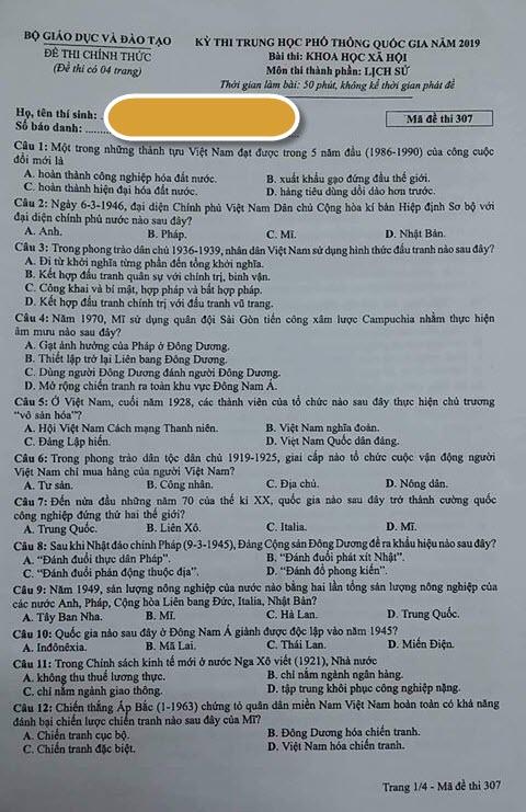 - Thi THPQG 2019: Đề thi và đáp án môn Lịch sử mã đề 307
