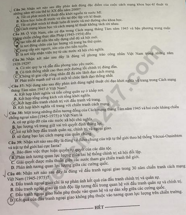 - Đề và đáp án môn Sử mã đề 305 thi THPTQG 2017 – đáp án của bộ GD-ĐT