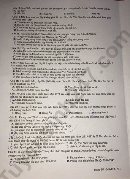 Thi THPQG 2019: Đề thi và đáp án môn Lịch sử mã đề 321