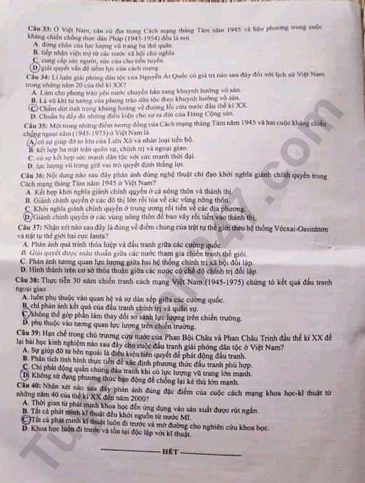- Thi THPQG 2020: Đề thi và đáp án môn Lịch sử mã đề 319