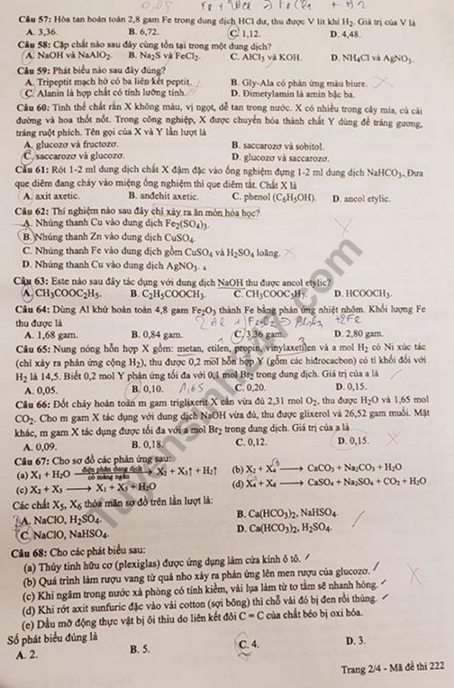 - Đề thi và đáp án: Mã đề 222