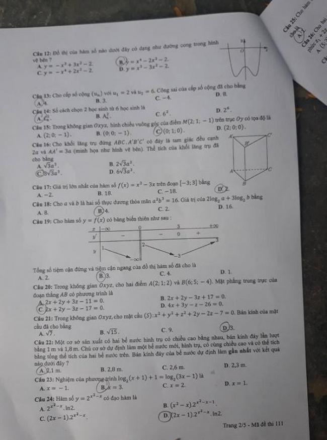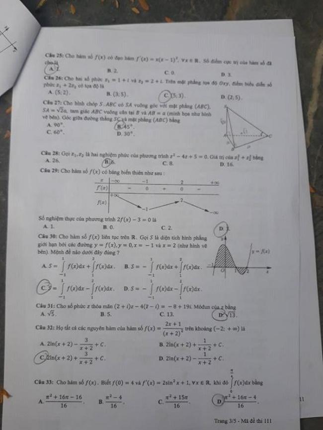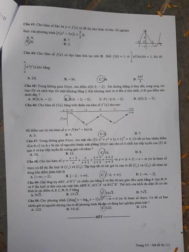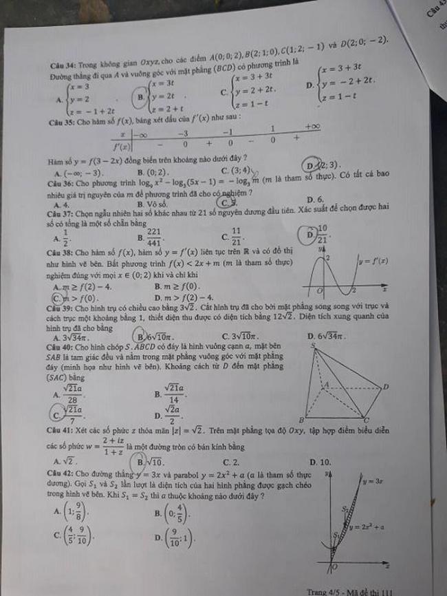 Thi THPTQG 2019: Đề thi và đáp án môn Toán mã đề 111