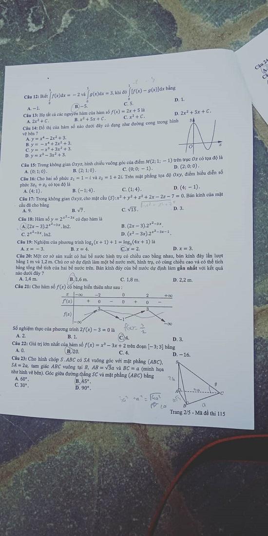 - Đề thi và đáp án môn Toán: Mã đề 115