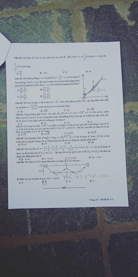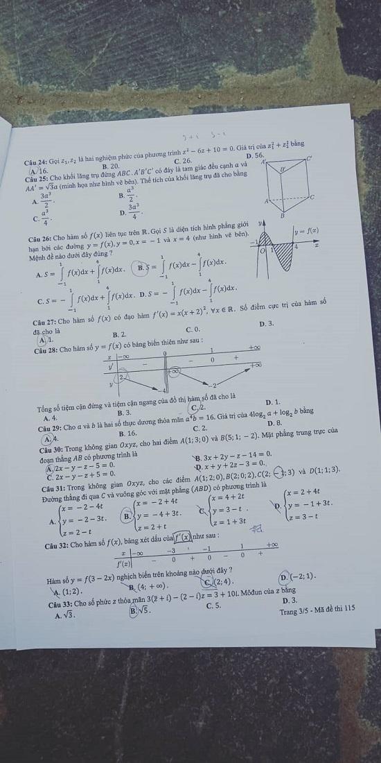 Thi THPTQG 2019: Đề thi và đáp án môn Toán mã đề 115